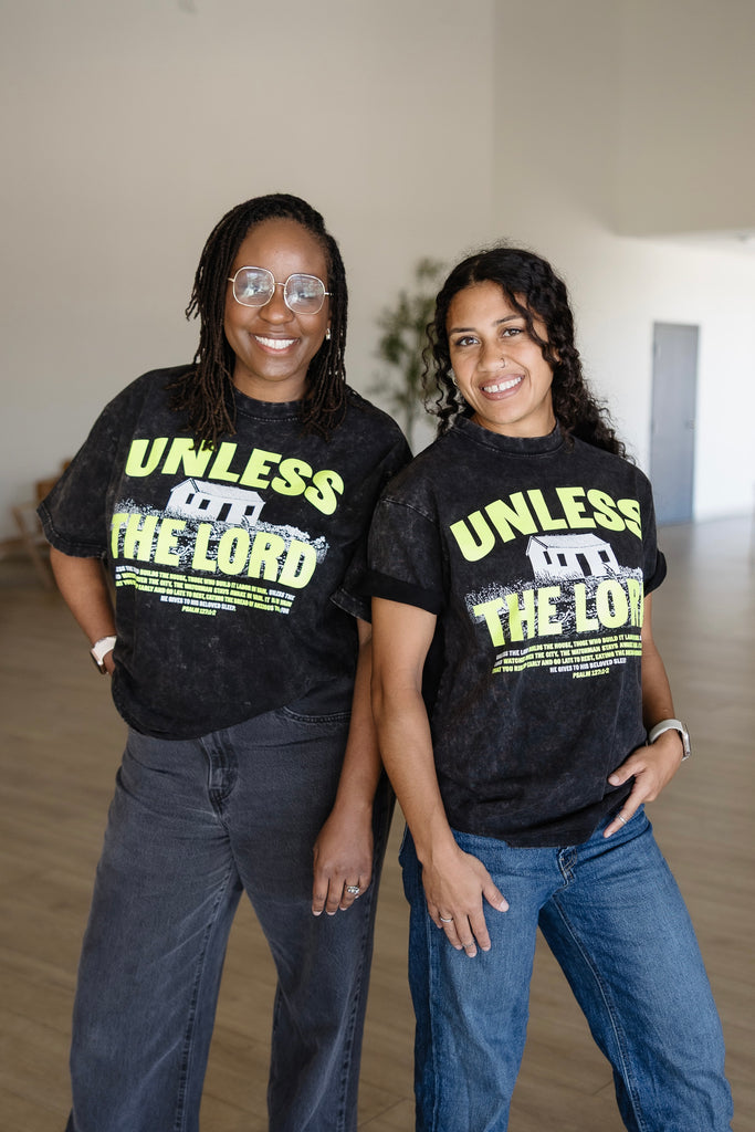 This was our featured t-shirt for The Well 2025. This sweatshirt is based off of Psalm 127:1-2, "Unless the Lord builds the house, those who build it labor in vain. Unless the Lord watches over the city, the watchman stays awake in vain. It is in vain that you rise up early and go late to rest, eating the bread of anxious toil; for he gives to his beloved sleep."